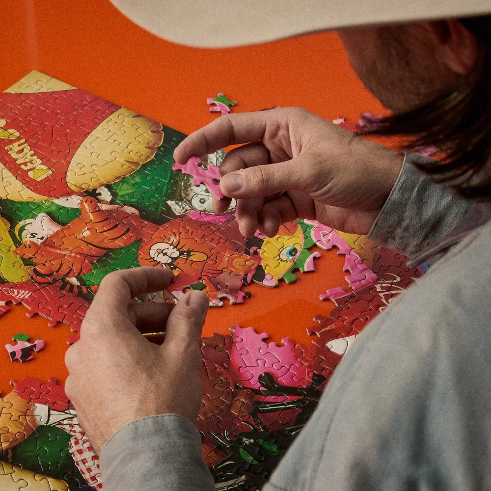 Infla tu propio ego completando este rompecabezas de 500 piezas que incluye una pila de formas inflables vintage, personajes y caras amigables.